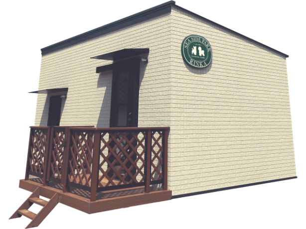 入り口には柵を設け、ワンちゃんが飛び出してしまわないよう配慮しています。壁面の看板を目印に来てくださいね!
