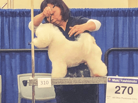 Maki Yoshimoto海外のトリミングコンテストに出場経験もあり、チャンピオン犬を多数輩出してきた実力を持つトップ技術のトリマーです。 ビションフリーゼ、テリアのハンドラーとして、専門学校教員としても活躍するとともに、たくさんの犬を育ててきた経験をいかして、1頭1頭の健康管理アドバイスもしています。