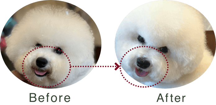 涙やけやよだれやけもスッキリきれい!ReFaのシャンプーヘッドとHYDRAのシャンプーで、毛穴の汚れが取れ、皮膚も健康&毛もキレイ、体臭も減ります!塩素カットなので、お肌にも優しいです。ぜひ一度お試しください!